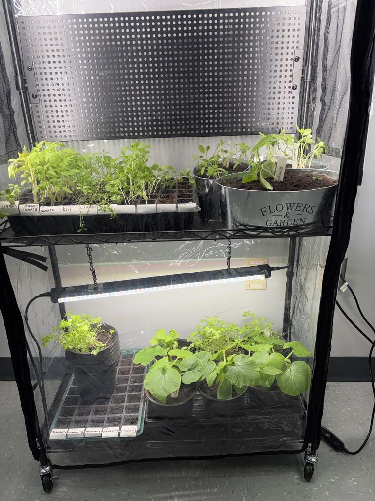 The indoor greenhouse is more than just shelves and lights; it is a dynamic teaching tool. Students will participate in planting seeds, watering, monitoring growth, and harvesting produce, all while following individualized visual schedules and task analyses. The grow lights allow us to simulate natural sunlight, ensuring plants thrive even during colder months, which means our vocational training does not pause. Students practice fine motor skills while handling soil and seeds, build functional math skills when measuring water or counting seedlings, and strengthen communication by requesting materials or commenting on plant growth using AAC devices.