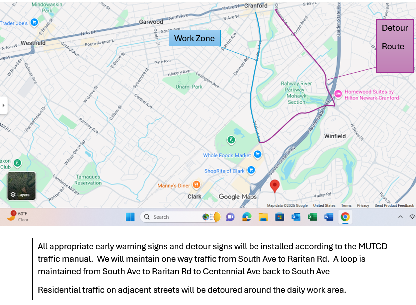- CR 610 South Ave in Cranford from Centennial Ave. (CR 615) to Roselle Line