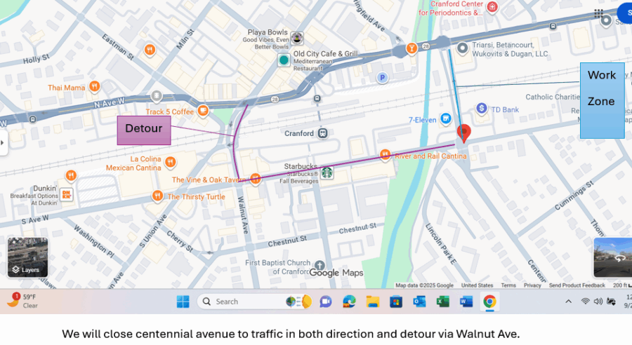 - CR 615 Centennial Ave in Cranford from North Ave. (SR 28) to South Ave. E. (CR 610)